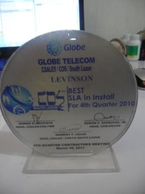 Globe Telecom Best SLA in Install for 4th Quarter 2010