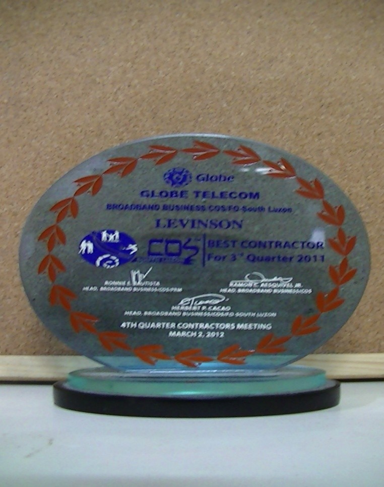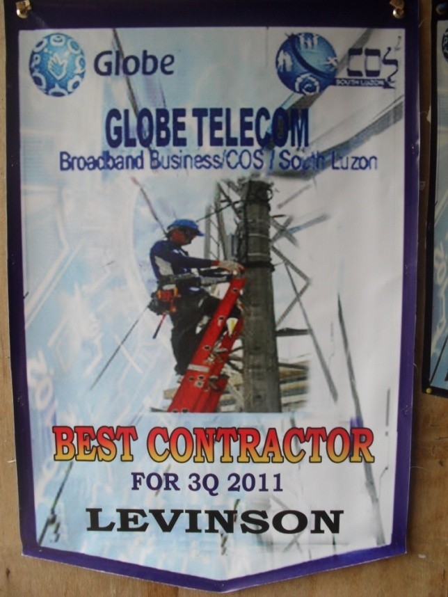 Excellence in Quality of Installation and Repair Best Contractor - Levinson South Luzon 1B 3rd Quarter  2012